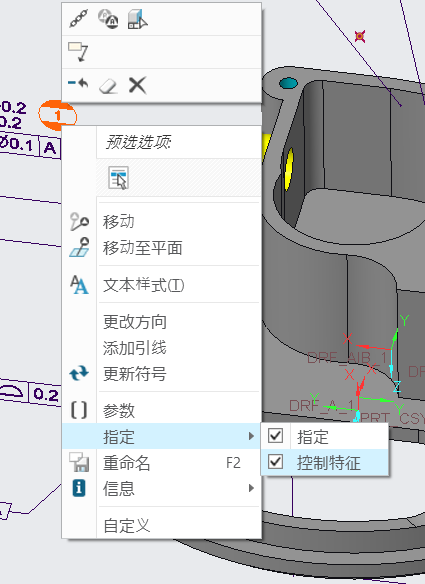 可直接从功能区选项或上下文快捷菜单中将符号指定为控制特征。