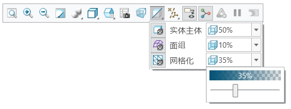 现在,控制主体和面组的透明度变得更容易。可在不应用外观的情况下设置实体主体、面组和网格化几何的透明度百分比级别。