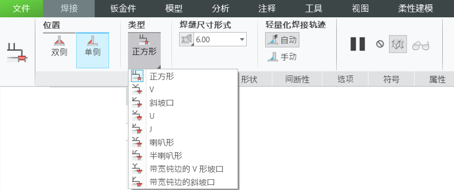 • “焊缝尺寸形式”(Weld Size Scheme)